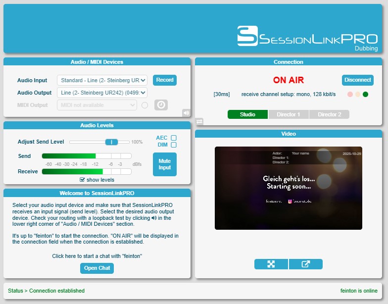 Bei uns können Sie bequem per Telefon bei der Aufnahme dabei sein. Sie hören die Session direkt aus dem Studio und können Regieanweisungen geben und sofort beurteilen, ob die Aufnahme so wird, wie Sie es sich vorstellen.